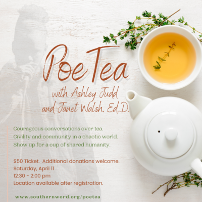 You are invited to a special PoeTea with Ashley Judd and Janet Walsh, Ed.D. for an intimate afternoon of courageous conversation over tea.
