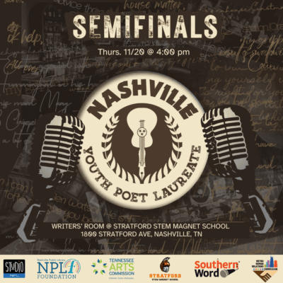 Join Southern Word for the selection of the 2026 Nashville Youth Poet Laureate finalists on November 20 at 4:00pm in the Stratford STEM Magnet School Writers' Room.The Nashville Youth Poet Laureate program aims to celebrate youth across Nashville at the intersection of artistic excellence and civic engagement. The semifinal round conducted in partnership with the […]